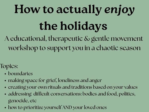December can be a hard time for a number of reasons: grief, family expectations, childhood trauma triggers, money stress, obligations, expectations, and it's cold and dark...